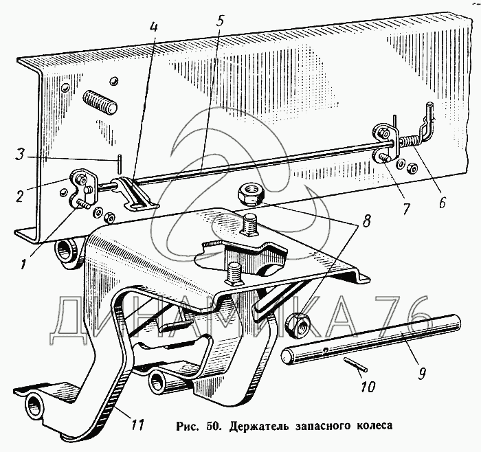 Держатель запасного колеса — ГАЗ-52-01: