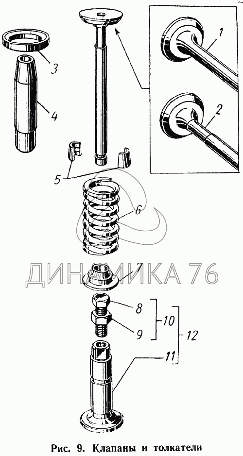Перечень комплектующих от Клапаны и толкатели на ГАЗ-52-01