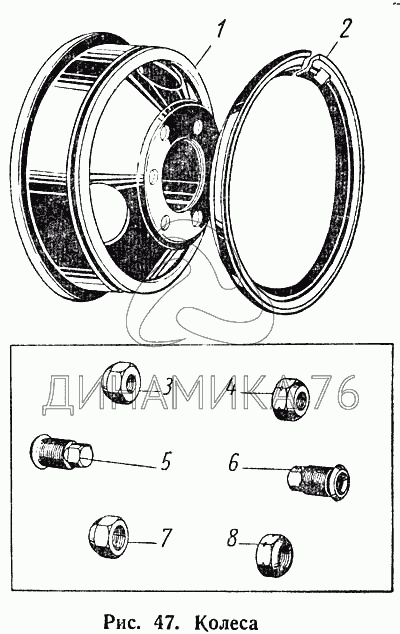 Перечень комплектующих от Колеса на ГАЗ-52-01