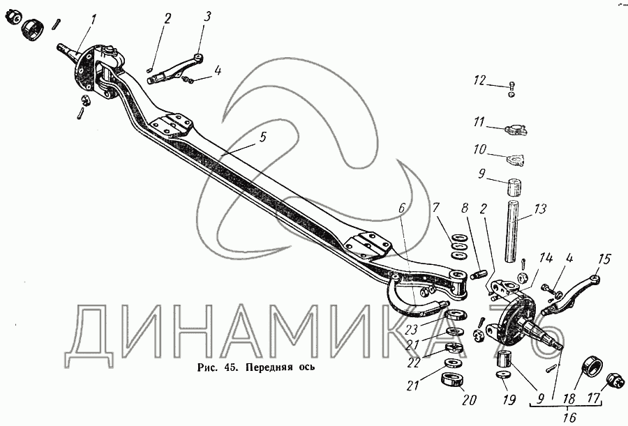 Перечень комплектующих от Передняя ось на ГАЗ-52-01