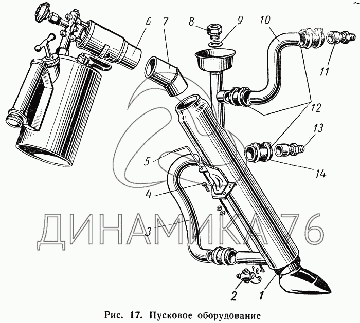 Лампа пускового подогревателя с инструментом и деталями в сборе