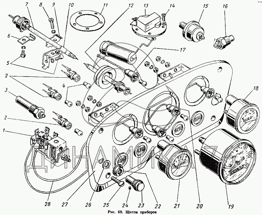Схемы запчастей предназначены для справочных целей! Мы продаем не все запчасти от Щиток приборов на ГАЗ-52-01, представленные в этом списке.