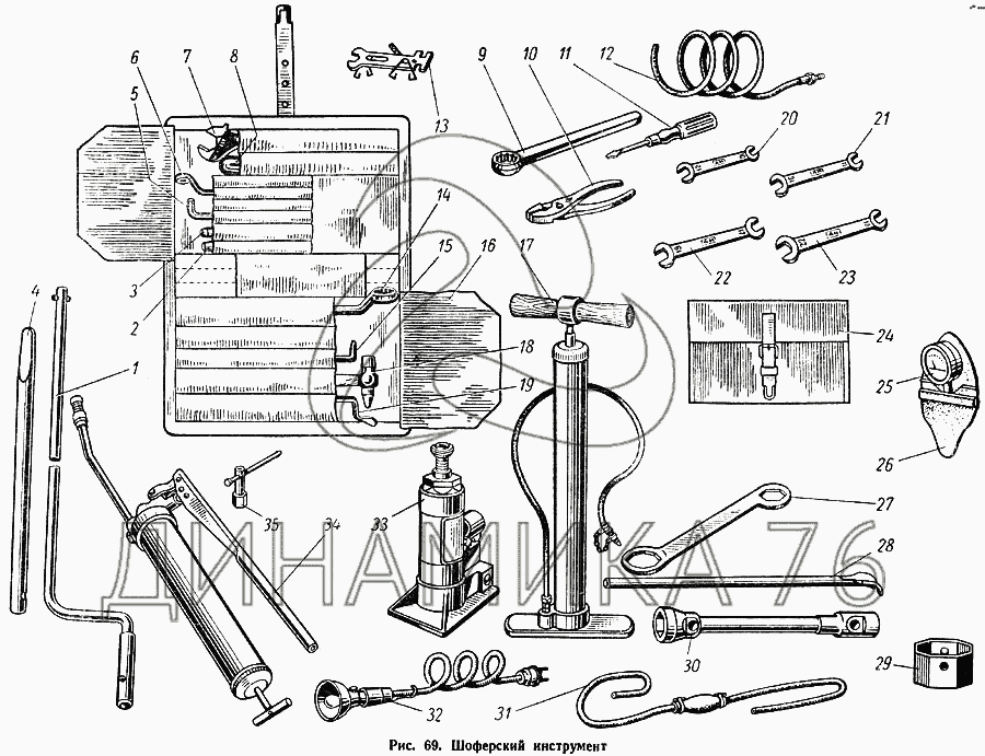Перечень комплектующих от Шоферский инструмент на ГАЗ-52-01