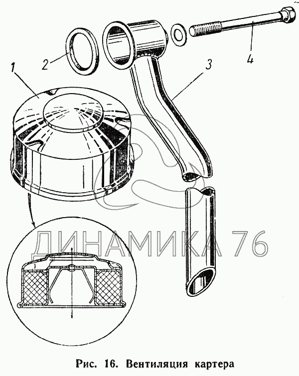 Перечень комплектующих от Вентиляция картера на ГАЗ-52-01