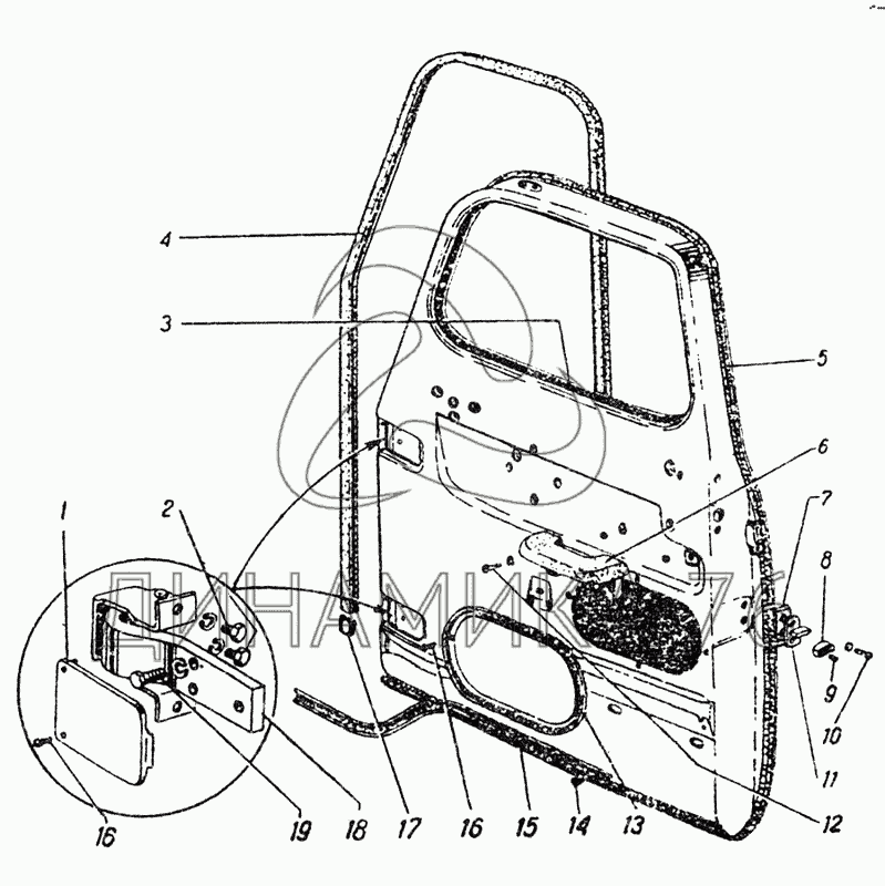 Перечень комплектующих от Дверь на ГАЗ-5312