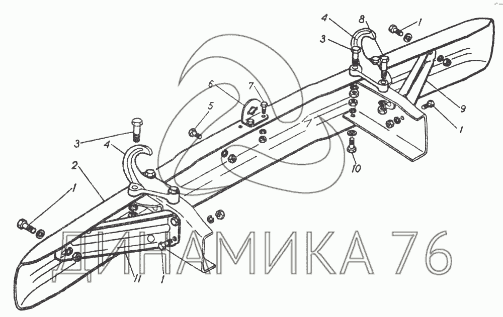 Перечень комплектующих от Передний бампер и буксировочные крюки на ГАЗ-5312