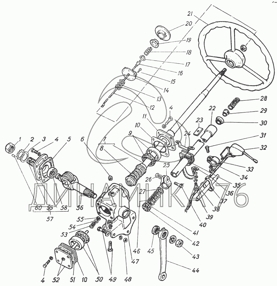 Перечень комплектующих от Рулевое управление и кнопка сигнала на ГАЗ-5312