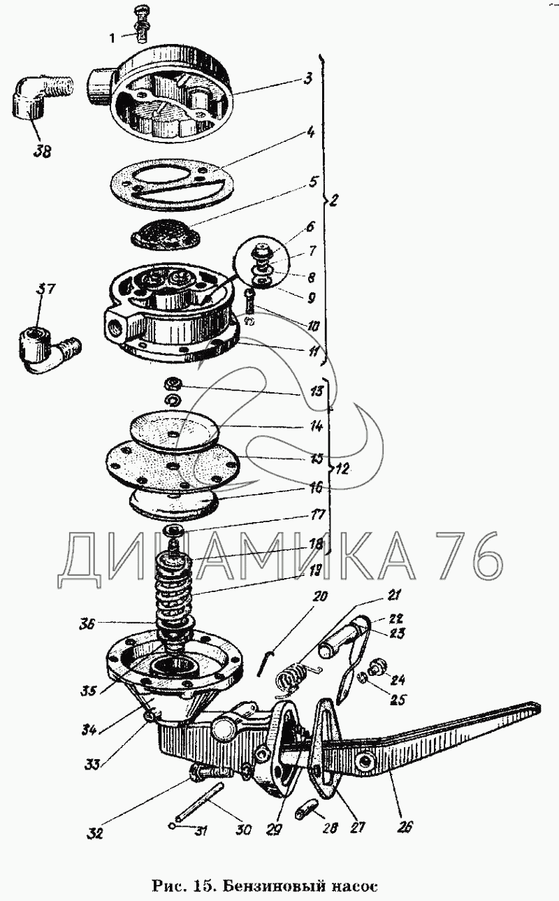 Перечень комплектующих от Бензиновый насос на ГАЗ-53 А