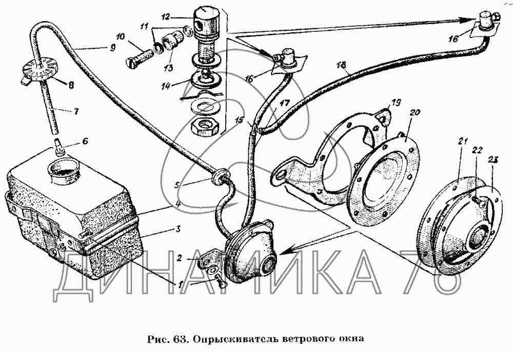 Опрыскиватель ветрового стекла — ГАЗ-53 А: