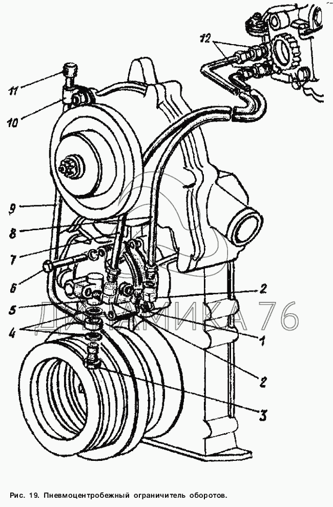 Перечень комплектующих от Пневмоцентробежный ограничитель оборотов на ГАЗ-53 А