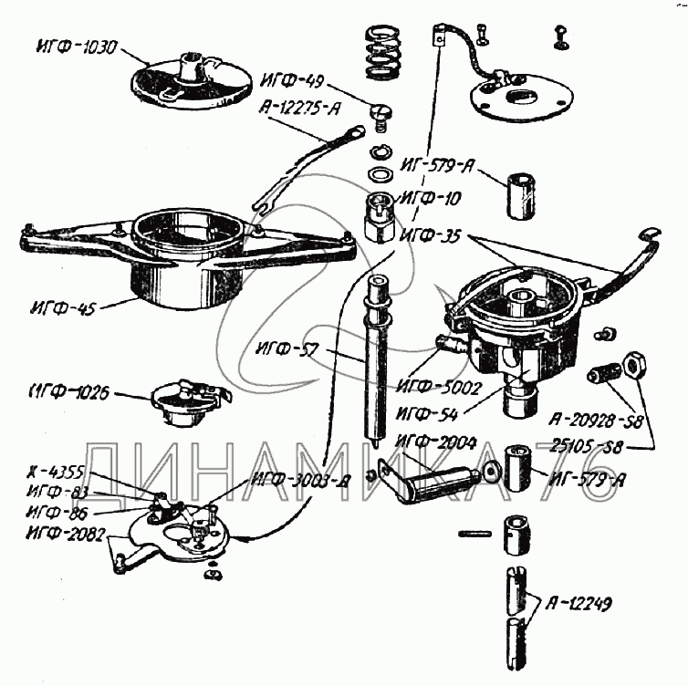 Перечень комплектующих от Распределитель, свечи запальные на ГАЗ-ММ "Полуторка"