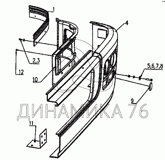 Перечень комплектующих от Бампер на Howo cnhtc-huaxin