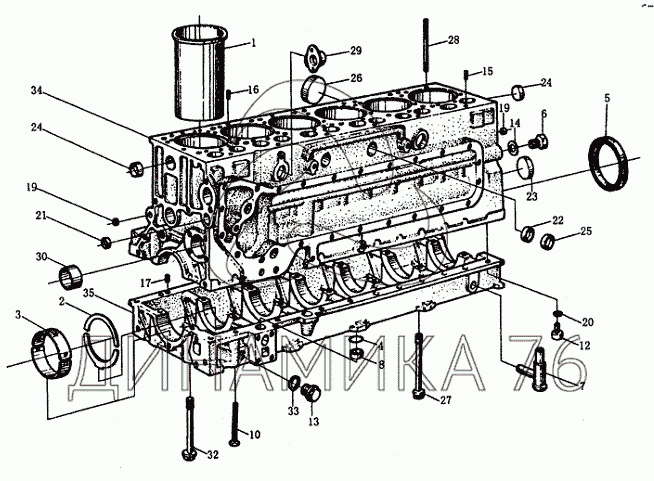 Перечень комплектующих от Блок цилиндров WD615 на Howo cnhtc-huaxin