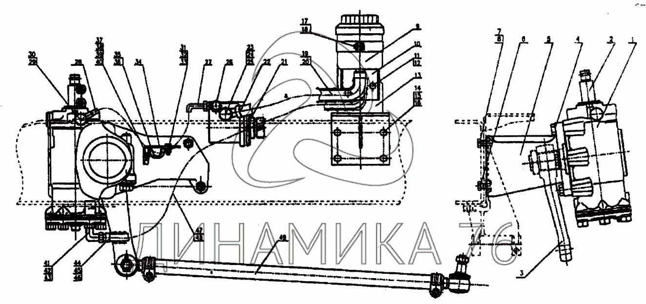 Перечень комплектующих от Гидроусилитель рулевого механизма 6x2 на Howo cnhtc-huaxin