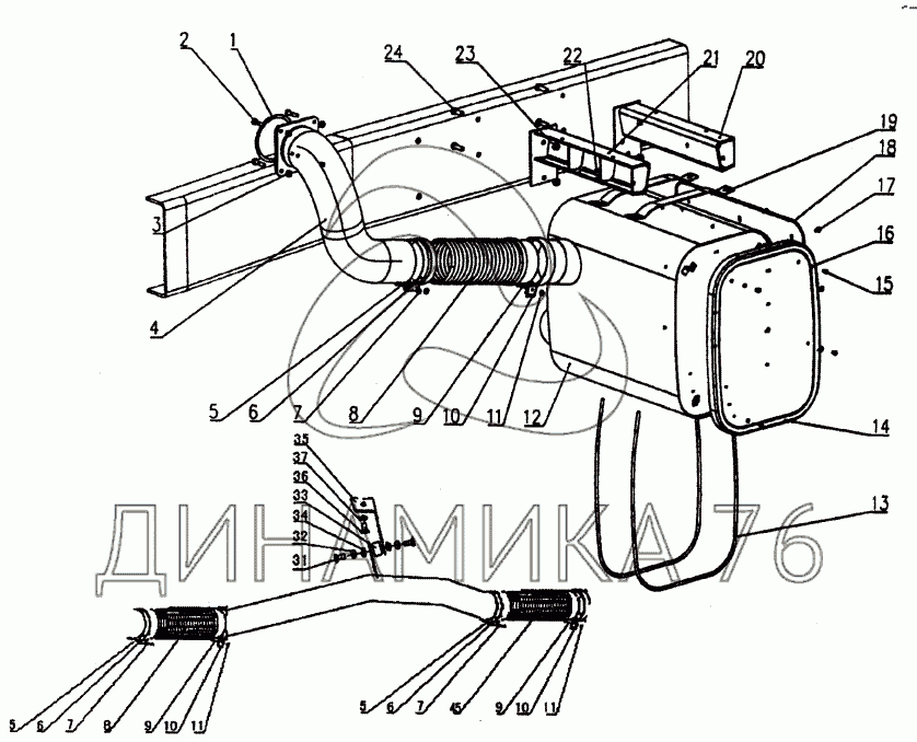 Перечень комплектующих от Приемная труба и глушитель на Howo cnhtc-huaxin