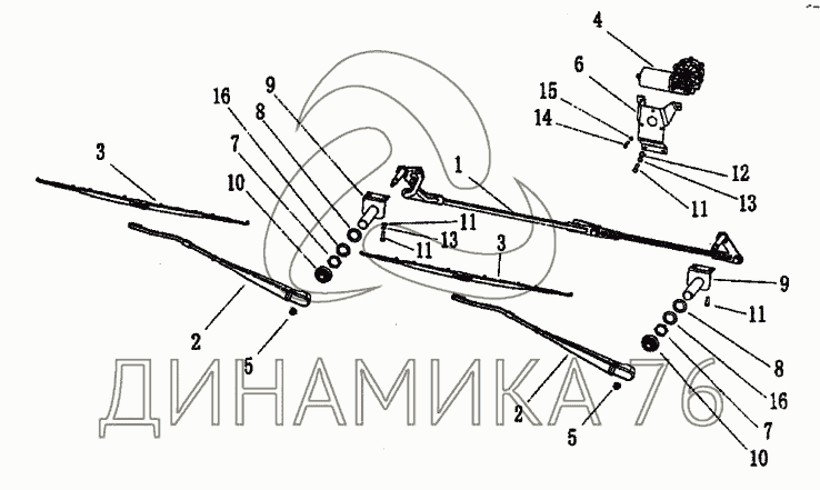 Перечень комплектующих от Стеклоочиститель на Howo cnhtc-huaxin