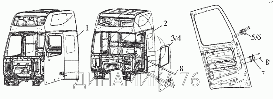 Перечень комплектующих от Cab body на ZZ4257N3247N1B_A7_D12_380