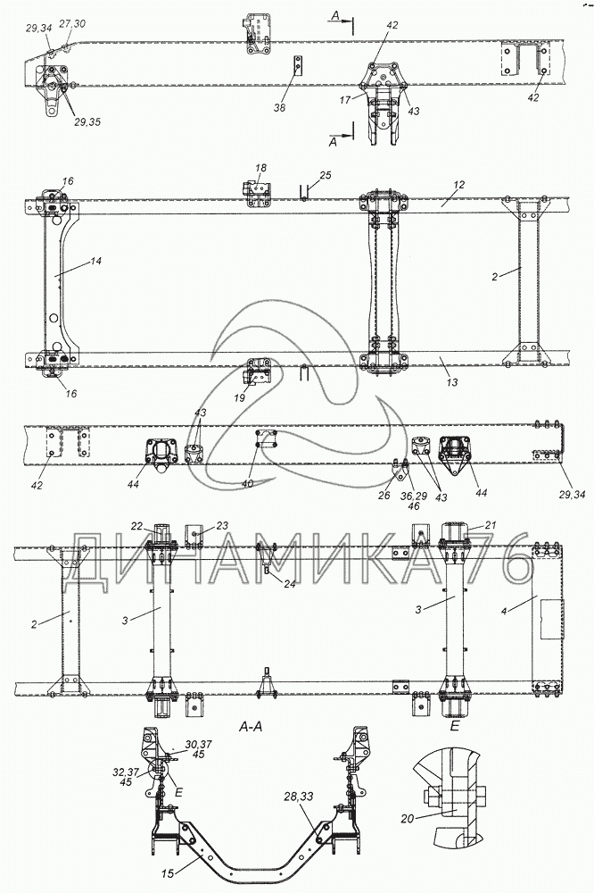 Схемы запчастей предназначены для справочных целей! Мы продаем не все запчасти от 4308-2800010 Рама на 4308, представленные в этом списке.