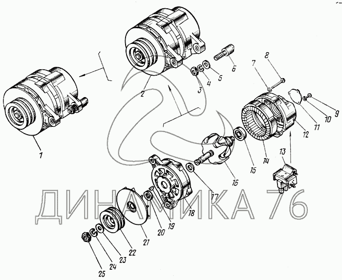 Перечень комплектующих от Генератор 740.3701008-40 на 43101