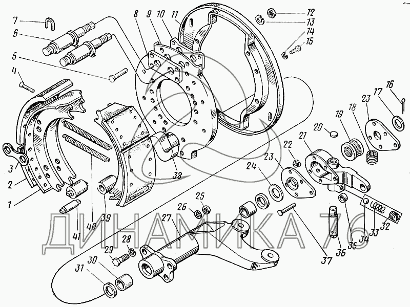 Перечень комплектующих от Тормоза рабочие задние на 43101