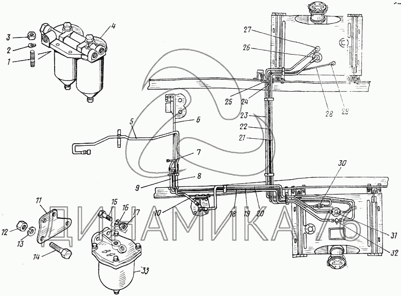 Перечень комплектующих от Трубопроводы топливные на 43101