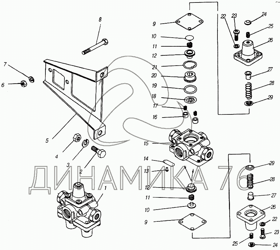 Схемы запчастей предназначены для справочных целей! Мы продаем не все запчасти от Клапан защитный тройной на 4310, представленные в этом списке.