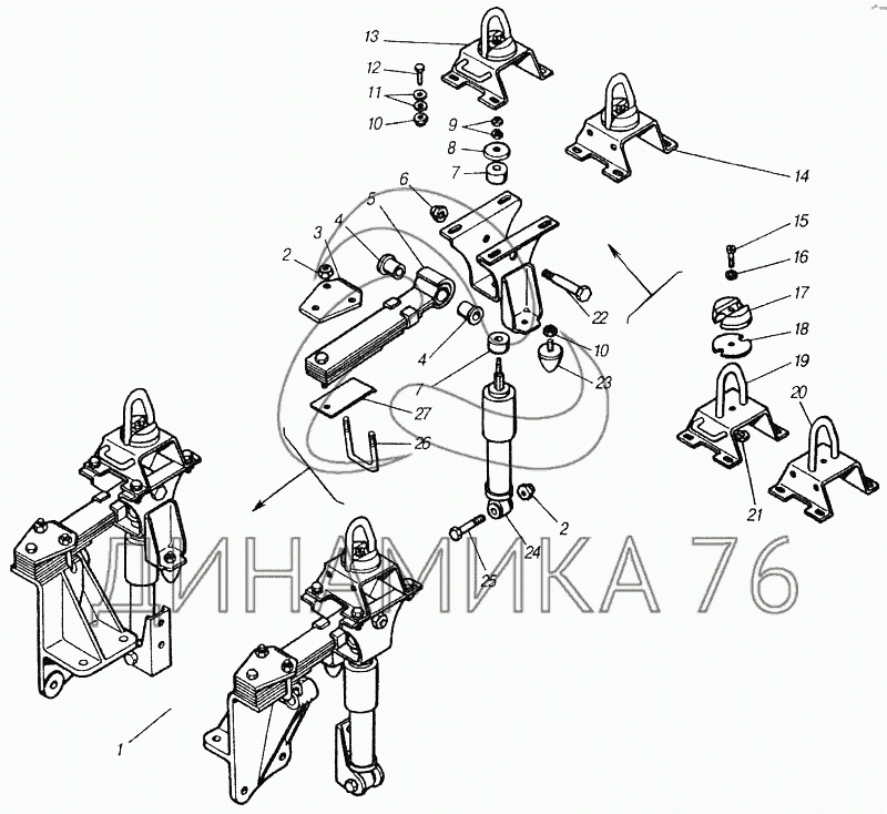Перечень комплектующих от Подвеска задняя кабины на 4310