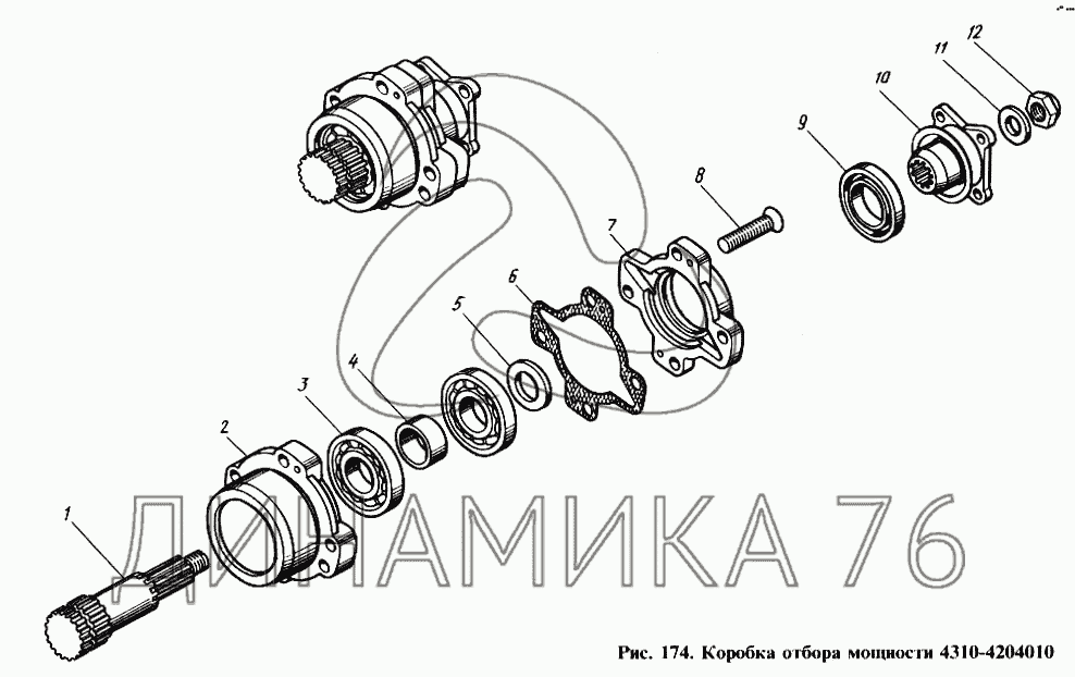 Перечень комплектующих от Коробка отбора мощности на 4310
