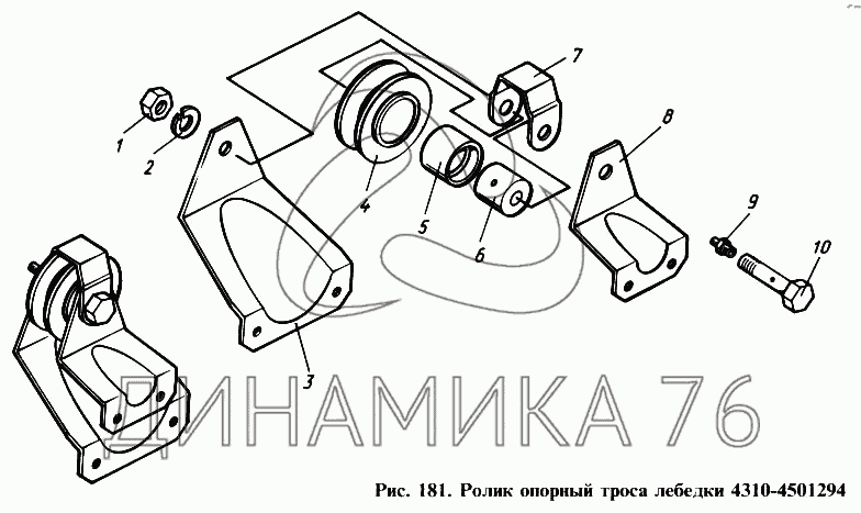 Перечень комплектующих от Ролик опорный троса лебедки на 4310