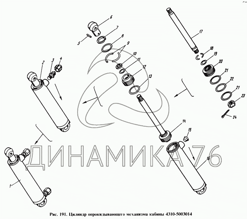 Перечень комплектующих от Цилиндр опрокидывающего механизма кабины на 4310