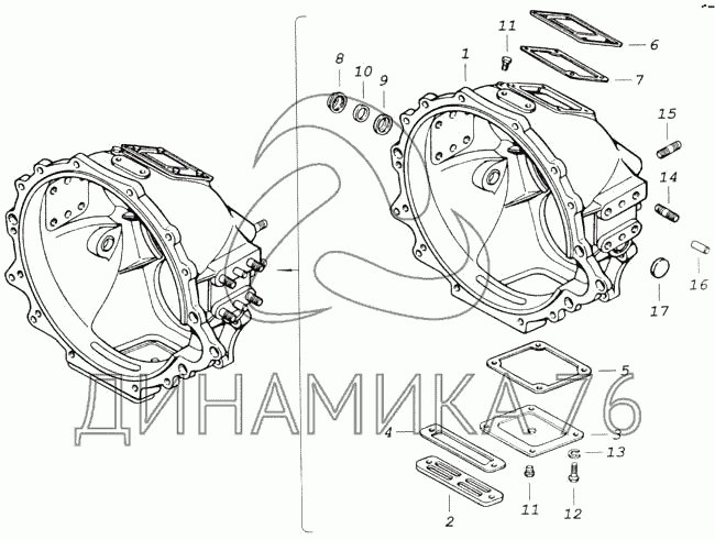 Перечень комплектующих от Картер сцепления на 43114