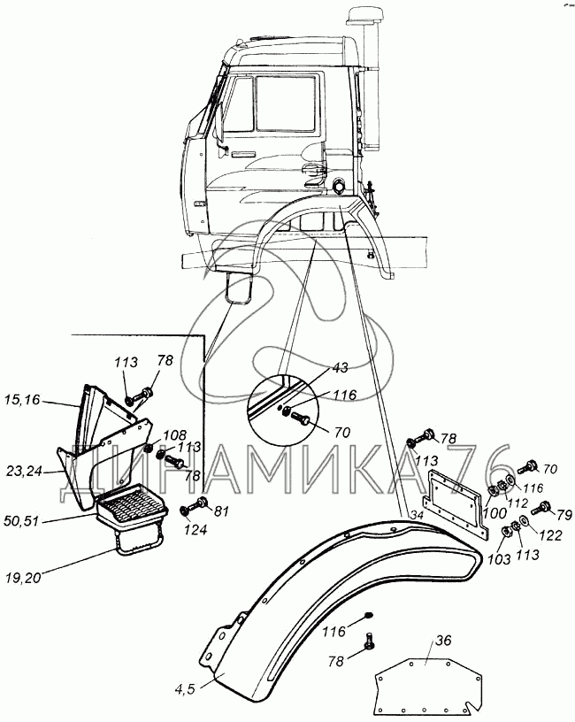 Схемы запчастей предназначены для справочных целей! Мы продаем не все запчасти от Установка оперения кабины на 43114, представленные в этом списке.
