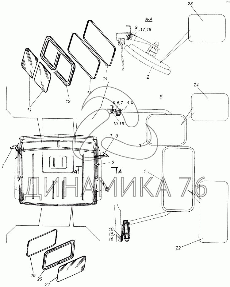 Перечень комплектующих от Установка зеркал заднего вида на 43114