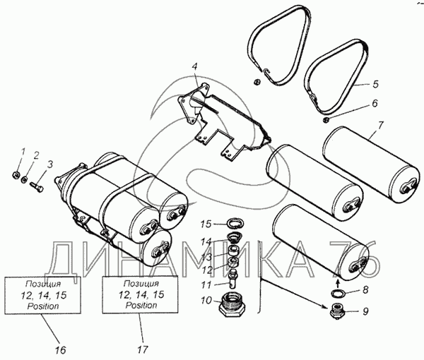 Перечень комплектующих от Ресиверы пневмотормозов на 4326