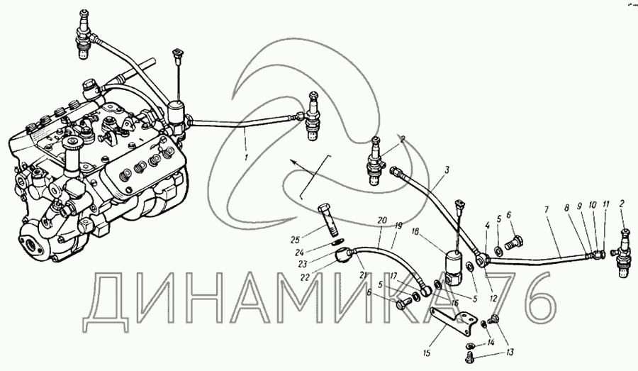 Трубка топливная от электромагнитного клапана к штифтовым свечам
