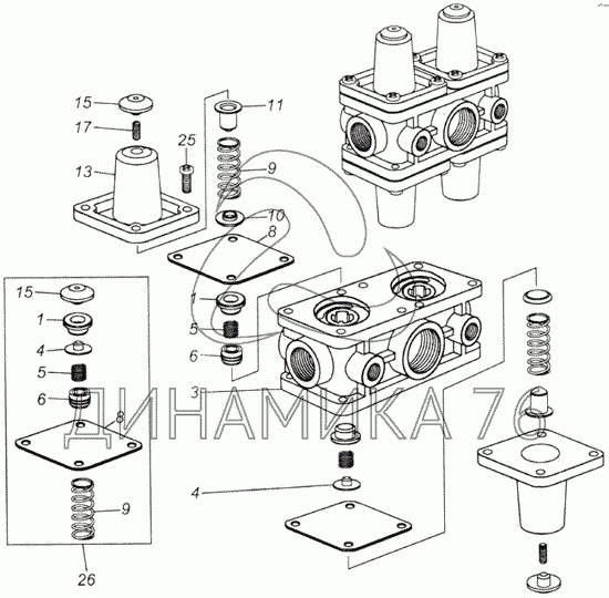 Схемы запчастей предназначены для справочных целей! Мы продаем не все запчасти от Клапан защитный четырехконтурный на 4326, представленные в этом списке.