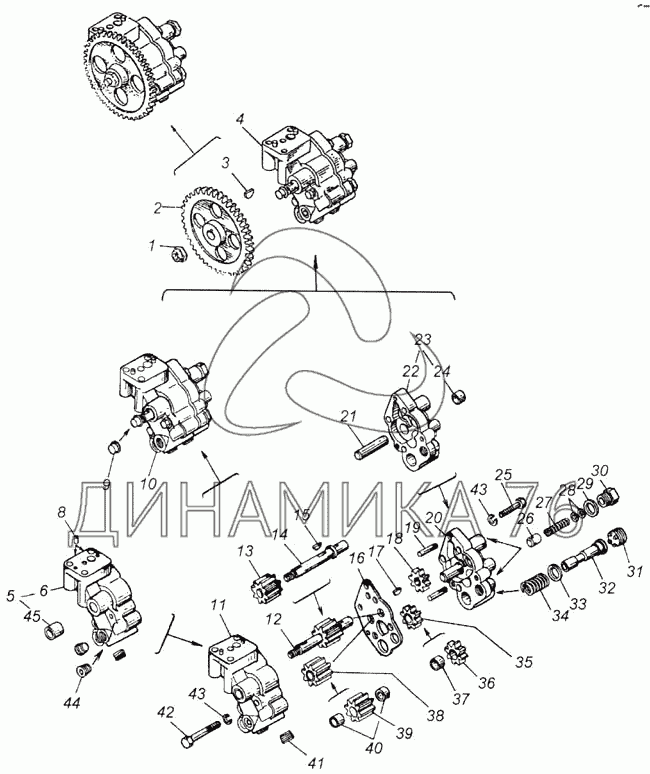 Перечень комплектующих от Насос масляный с шестерней на 4326