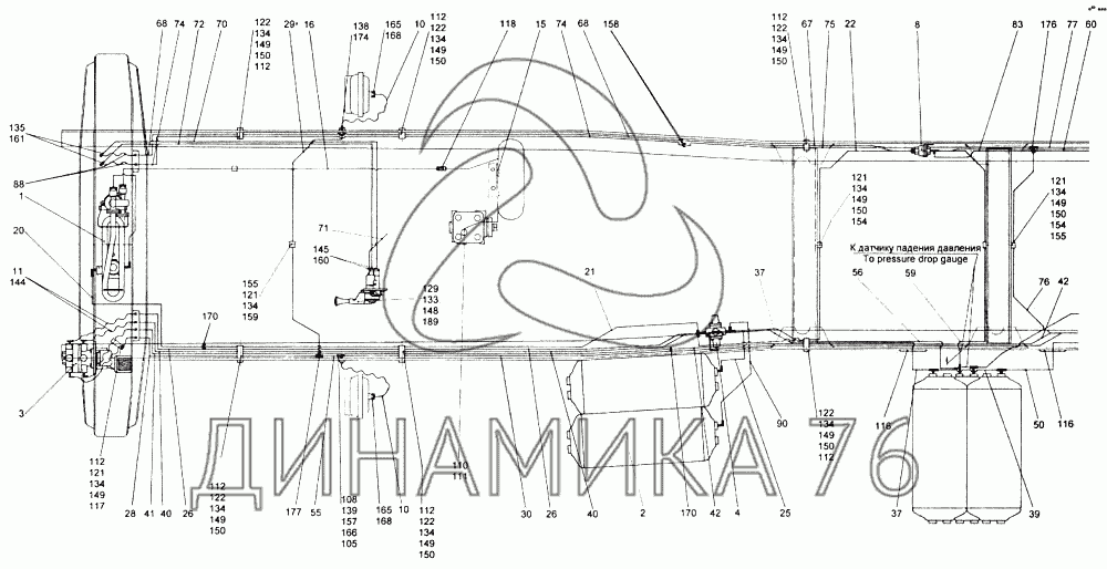 Трубка от ресивера стояночной тормозной системы к крану управления стояночной тормозной системой четвертая