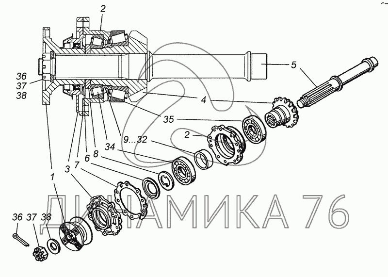 Перечень комплектующих от 53205-2402021 Вал ведущий заднего моста в сборе на 43501 (4х4)