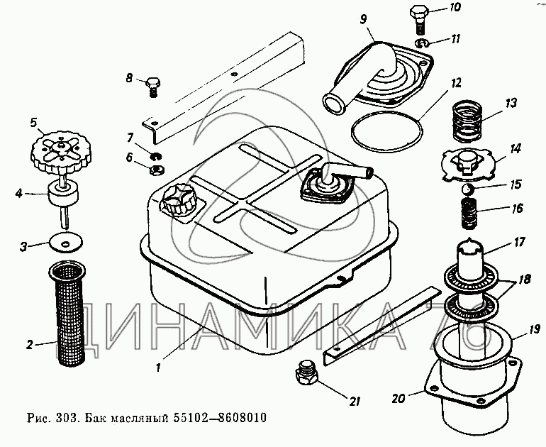 Перечень комплектующих от Бак масляный 55102-8608010 на 5320