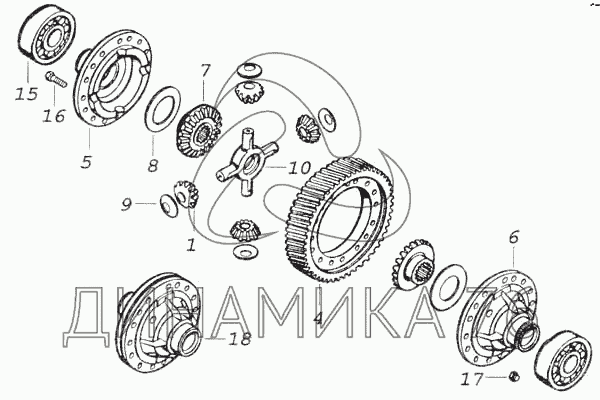 Перечень комплектующих от Дифференциал заднего моста на 53228, 65111