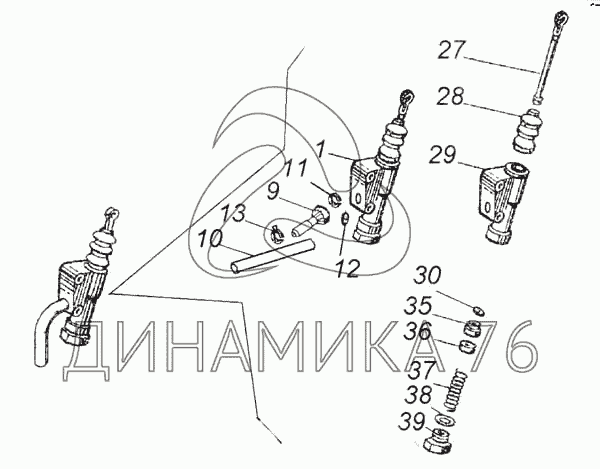 Перечень комплектующих от Главный цилиндр управления сцеплением на 53228, 65111