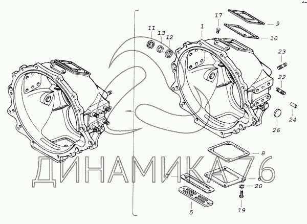 Перечень комплектующих от Картер сцепления на 53228, 65111
