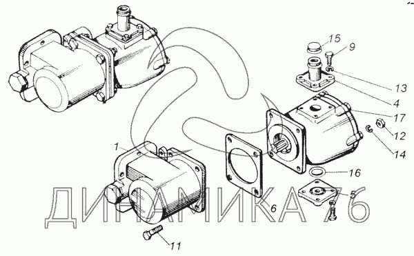 Перечень комплектующих от Коробка отбора мощности с насосом на 53228, 65111