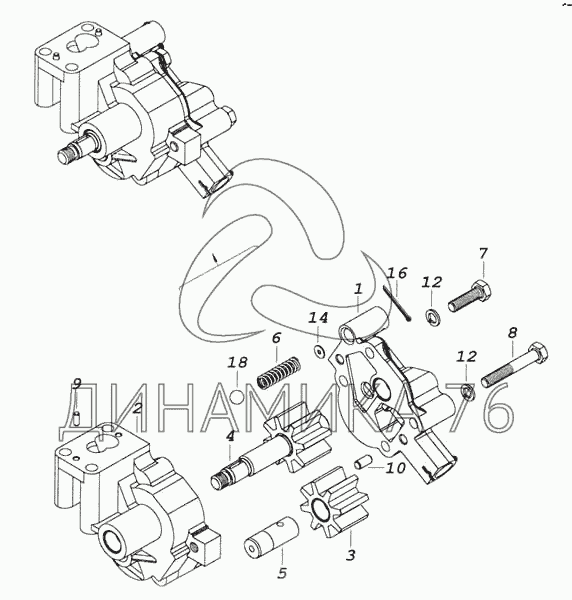 Перечень комплектующих от Насос масляный на 53228, 65111