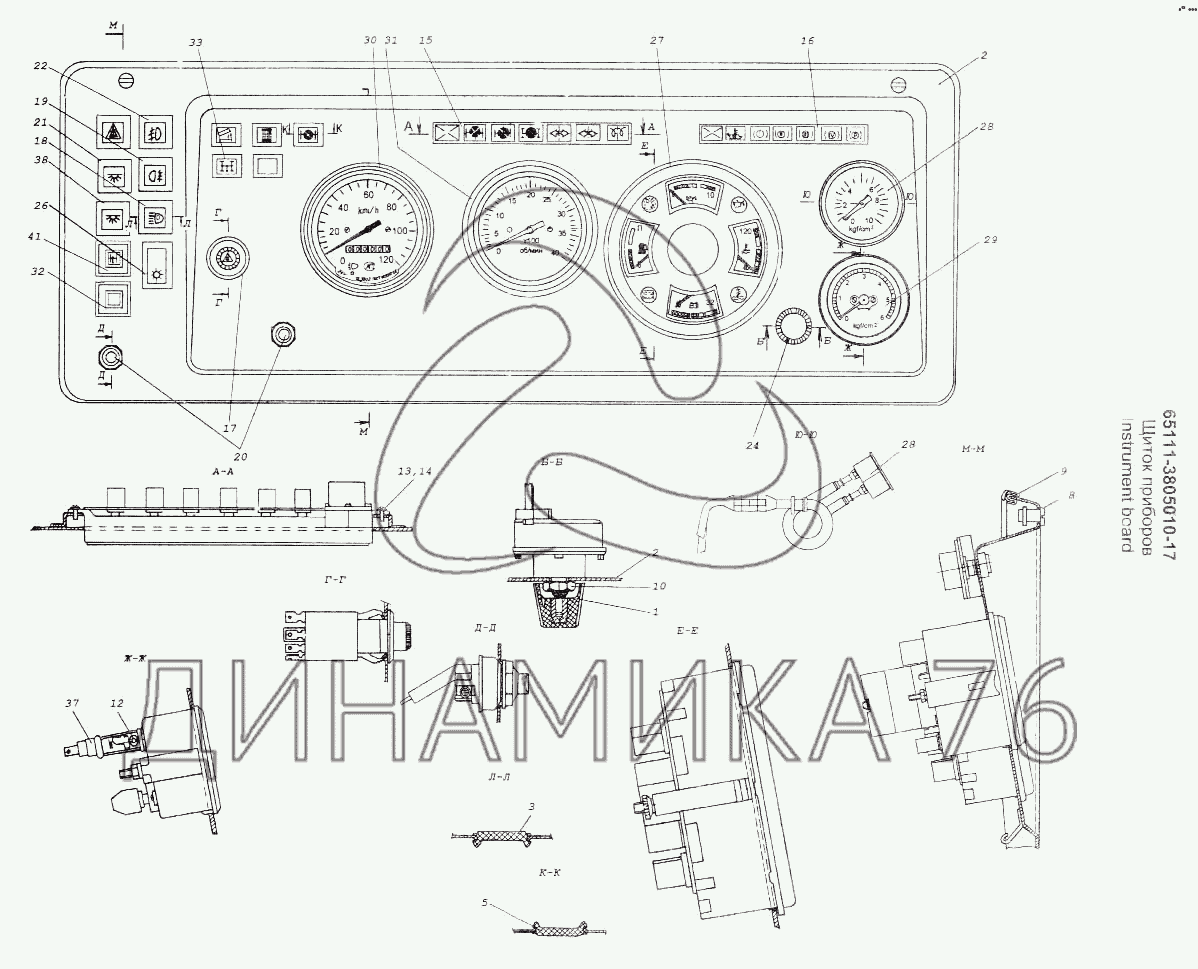 Перечень комплектующих от Щиток приборов на 53228, 65111