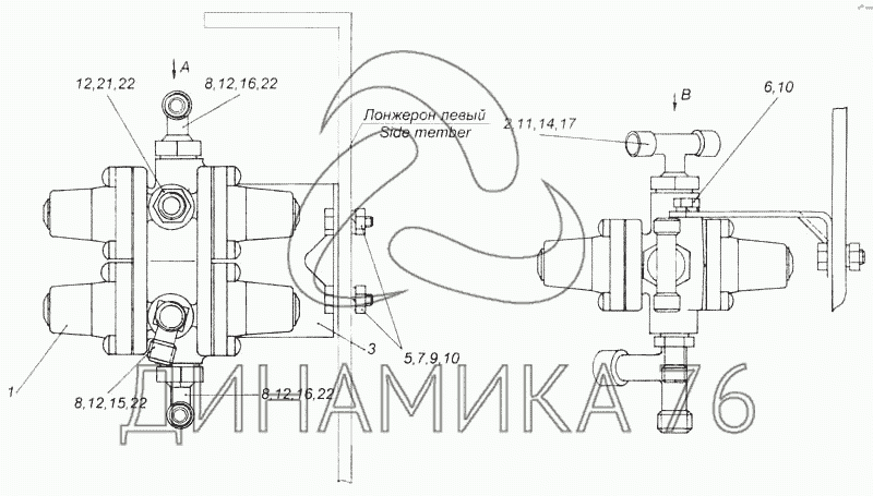 Установка четырехконтурного защитного клапана на 53228, 65111 (до 2004 г.)