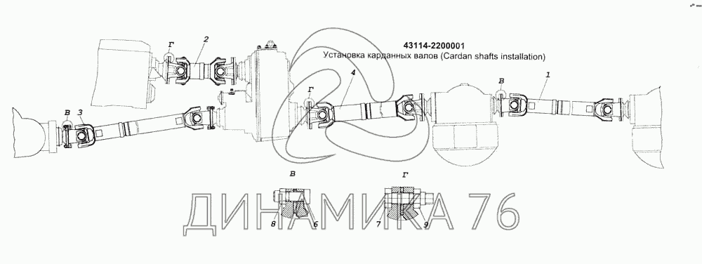 Перечень комплектующих от Установка карданных валов на 53228, 65111