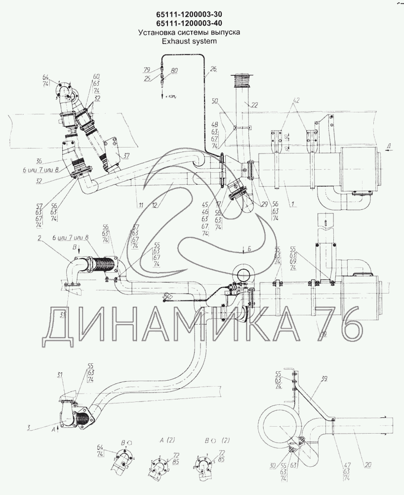 Перечень комплектующих от Установка системы выпуска на 53228, 65111