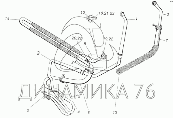 Перечень комплектующих от Установка трубопроводов рулевого управления на 53228, 65111
